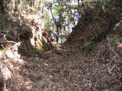 深さは6m、幅は10mほどあり、堀底は道になっている。