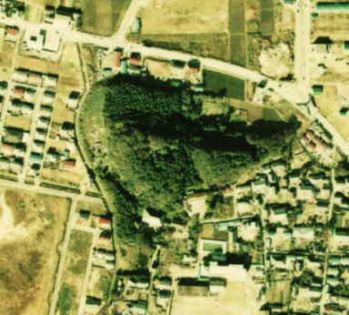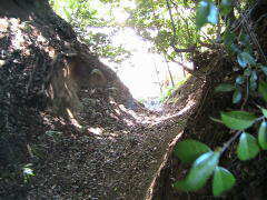 丘の北側は藪であり、登る道はない。西側、南側は崖である。