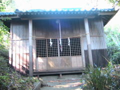郭TとUの間にある堀切A | 郭Tの北にある八幡神社。この付 近は数段の曲輪になっている。 |