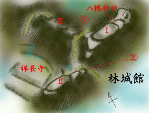 さて、肝心の林城館であるが、寺の東側に南西方向から北東方向に延びる長さ350m、幅100m、比高30mの山である。