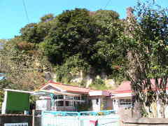 | なお、西側の崖には「住吉摩崖仏」があるという。 この「住吉磨崖仏」は6体あり、麓の遍照院が文安元年(1444)に開山した時には既に存在していたという。 登り口を捜し、ようやく南側の小名浜第3小学校北の住吉保育所と澤小屋稲荷神社の間に登る道があるのを見つけた。 ここを行けば館に行ける。この道を行くとまず凝灰岩の岩盤を削り込んだ井戸のようなものがある。 これが井戸跡なのか、石切場の跡なのか分からない。 さらに道を上がると鞍部に出る。 鞍部を西に上がると西郭である。 内部は東西60m、南北40mほどの平坦であり、鞍部からの登り口部分が内枡形状に窪んでいる。 郭の周囲北側以外は絶壁である。 北側も急傾斜である。 北側のみを高さ3.5mの土塁が覆う。 北側だけが崖でないために構築したものと思われるが、どうもこの土塁は風よけとしての役目の方があるように思える。 解説では石垣があるというが、崩れた岩はあるが、それらしいものは見られない。 北側の土塁が立派であるが、残る3方にも土塁があったような痕跡がある。 |