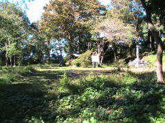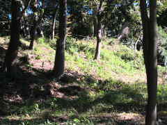 | 西郭内部は平坦である。周囲は崖。 | 西郭北側に土塁がある。石垣があ ったというが分からなかった。 |