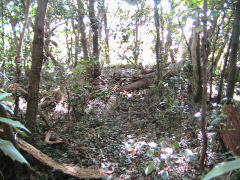 東郭内部は藪。土塁を写したのだ が、これじゃ分からない。 |