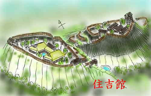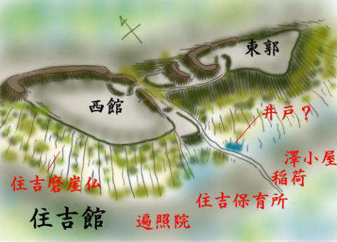 島倉山館の岩崎氏の勢力拡大に脅威を抱き、応永17年(1410)、岩城氏6代岩城隆綱が攻撃し滅亡させるが、その攻撃の陣を置いたのがこの住吉館という。