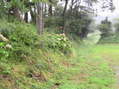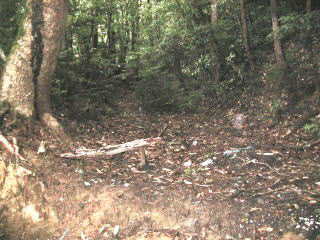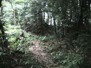 B大手道は土塁の上に付けられて いたようであり、この道を行くと 本郭まで行ける。 |
