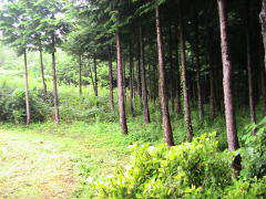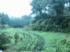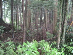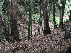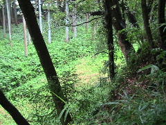 | D東館内部は半分は藪。 左に本郭との間を仕切る土塁がある。 |