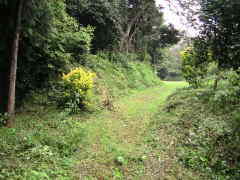 道(土塁)脇の法面が新しい感じなので、後付けのものかと思ったが、もともとあった土塁上の道を改修したものらしい。