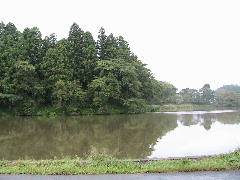 | 本丸に建つ相馬神社。 | 本丸北側の堀。向こうが北二の丸 になる。 |