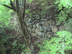 堀の途中から山に上がる道があり、そこを行くと1重目の堀底に出る。ここを8m上がる。