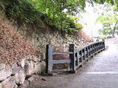 本丸の西側の通路、黒橋。 | 黒橋付近の石垣を南二の丸から見る。 この付近の石垣が一番規模が大きい。 |