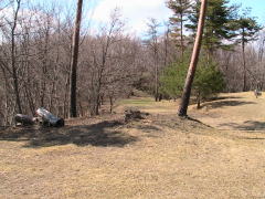 | A 三郭と本郭の間には竪堀がある。これは間違いなく遺構である。 | 本郭の内部。 | 二郭から見た本郭。二郭より一段高い。右下に腰曲輪がある。 | 先端にある二郭内部は凹凸している。ここに館があったのだろうか。 |