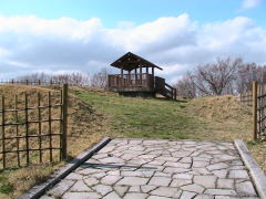ここからは湖一帯はおろか、反対側の西側を見れば郡山方面までが一望の下にある。 この展望台の場所が館の主郭である。ここの標高は390m。ダムの下の大滝根川の標高が280mであるので、比高は110m。 ちなみに湖の湖面の標高は320mとのことである。 ここは四方が急勾配の山の頂上である。頂上は40m×20mの広さであり、周囲には土塁があるが、どこまで本物かは分からない。 ここが本郭に相当する場所であろう。この南側はダム建設が山を削られてしまい、湮滅しているとのことである。 この削られた部分に二郭があったらしい。大きさは本郭とほぼ同じである。 東の斜面には、土塁を持つ帯曲輪とさらに下に平場があったらしいが、ここも下に駐車場を建設したために失われている。 北側と西側のみが残存している。しかし、そこには段々の曲輪が2段ほど見られるだけである。 元々は長さ150×100m程度の広さの館であったらしい。 こんな急な山にあるので、当然、居館ではなく、臨時の砦、物見、狼煙台なのであろう。 館主は大越紀伊と伝えられている。 大越紀伊は田村清顕が天正14年(1586)に死去後の伊達派と相馬派の家内抗争で相馬派に与し、抗争に敗れて殺害されたという。 この後、館がどうなったかは定かでない。(三春町歴史民俗資料館「三春城と仙道の城」参考) |