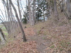 東側の背後は急になっており、その底を通る道路が堀切跡ではないかと思われる。