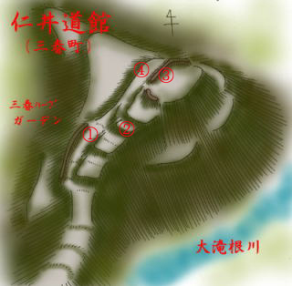 斉藤館の南700m、三春ハーブガーデンの北東側の標高323mの山が館跡である。 |
