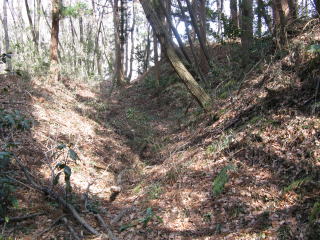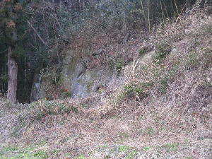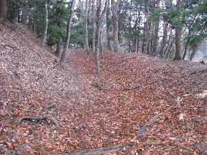 南東端部に大手曲輪とも言える三郭があったが、その一部と思える遺構が藪の中に残っている。