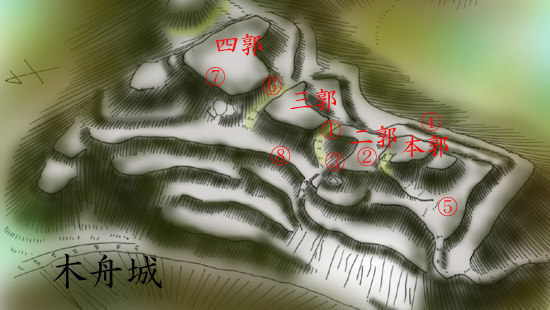 南の宿集落が根小屋であり、そこから本郭までの比高は40mである。 |