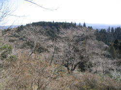 | 本郭東の帯曲輪から東下の曲輪群を見る。 | 本郭から見た谷津を隔てて東にある 鹿子山出城。 |