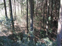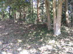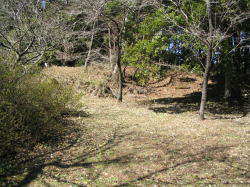 本郭西側の曲輪群。 この部分は杉と藪の中に遺構がある。 |