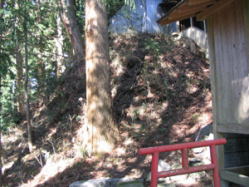本郭@は東西25m、南北11mと比較的狭い。拝殿の後ろに高さ4m位の土壇があり、ここが最高個所である。