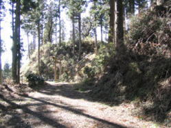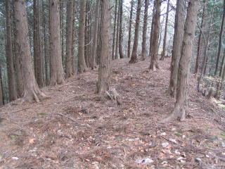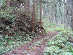 ここからは参道に入るが、本郭までの曲がりくねった道沿いに土塁や堀がいくつも現われる。