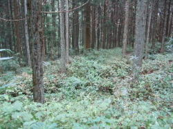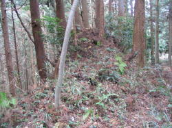 | 中央部の堀切。深さ7m程度。 | 尾根上の曲輪の東側には土塁がある。 | 北端の横堀。 |