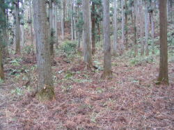 冬に登った西側からの道(出羽神社裏参道)も杉林の勢いが旺盛で遺構の確認は困難である。