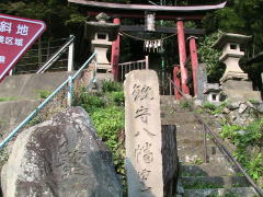 40mほど登ると中腹の社殿に出るが、その途中に曲輪らしい平坦地がある。