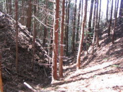 | 9の曲輪南の堀切。堀切というより 横堀に近い。 この付近が本城の南端か? |
