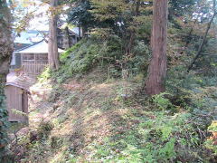 | 本郭内部南側。天守台のような 土壇が神社背後にある。 |