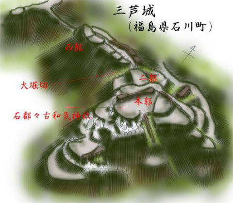 沢井氏は石川氏の最有力な一族で、沢井城は三芦城の西の防衛拠点であり、赤館、権現山砦、一夜館等、石川領西方の城砦群の指揮所であり、戦国前期は、白河結城氏とはここを拠点に戦っていたものと思われる。