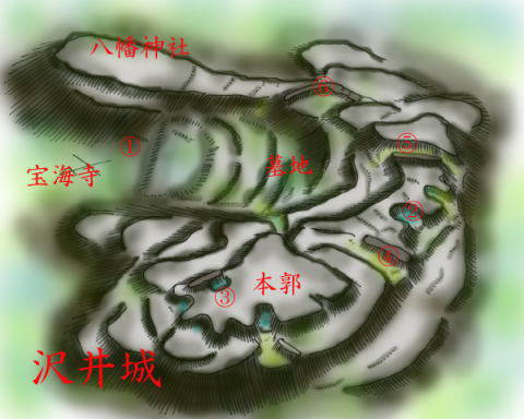 その後、沢井城は、赤館城や滑津館の中継地として、佐竹氏が拡張整備したと推測されるという。(石川町史 第三巻)