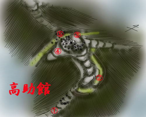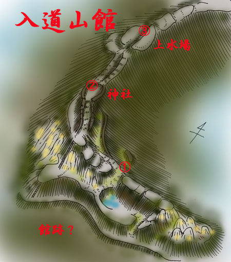 取り付ける場所は尾根沿いか、館北東下の台地状の場所に限られる。