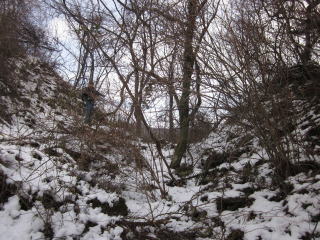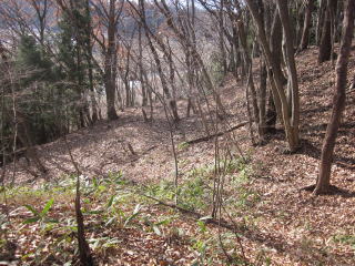| C本郭南側の腰曲輪は比較的平坦 | D本郭西側の堀切、ここから先には遺構はない。 |