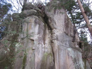 ここは石切り場であったようであり、巨岩Iがそびえる。