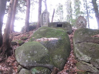 その巨岩の東側には古峯神社の祠Jが祀られ、東下から参道が延びる。