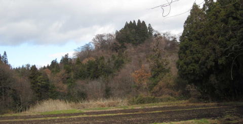 ![]() ↑ 南側から見た山城部。この山には遺構は確認できなかった。 |