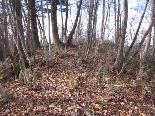 尾根を西に50mほど向かうと少し高度があがり本郭となるが、ここも不明瞭。
