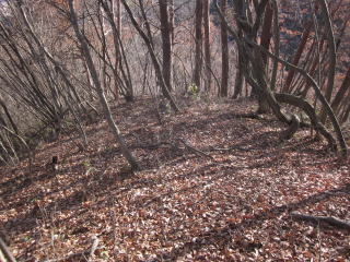 さらに尾根は西に続き、高度も少しずつ上がっていくが、堀切はない。