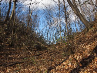 ここは野ばらはない。ここを上がると腰曲輪があり、高度で10mほど登ると尾根に出る。