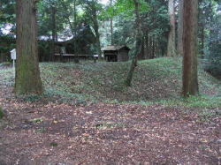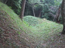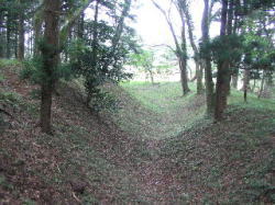 | 館内部から見た北側の土塁。 | 館東の横矢がかかった前面に土塁を 持つ横堀。 |
