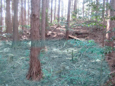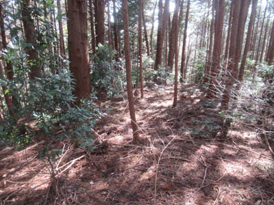 主郭部はその東側の山であるが、杉林や雑木林であり、下草も多く冬場以外は行きにくい。