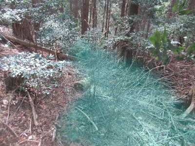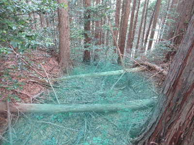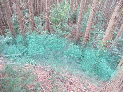 鉄塔の建つ場所から山に入ると、まず切岸がある。