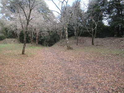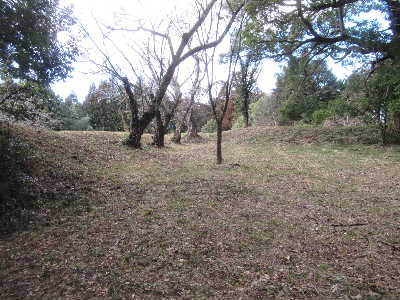 | 郭5から見た郭4。 一段高く、その間に堀があったらしい が埋められ、土塁は崩されている。。 |