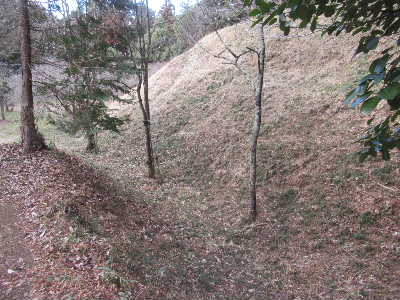 郭4内から見た郭3と2。 | 郭3の土塁手前には堀Bがある。 | 郭3内部。周囲を高さ3mほどの土塁が覆う。 |