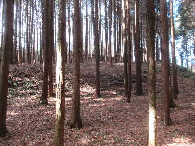 | 郭2に入る手前の小曲輪から見た郭3内。 左下が堀A. |