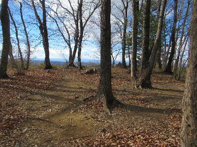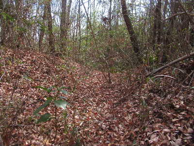 千本城から南側に続く山は一旦、堀切Eで鞍部となり、また登りになる。 |