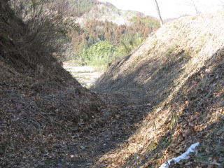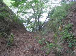 | 平坦地V西の切通。 これは堀跡を拡張したものでは? |
