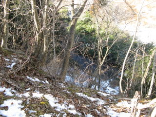 ピークUから下を覗くと・・ 40mの崖の下に押川の流れが・・。 |