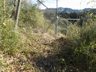 平坦地南側の道を行くと分岐があり、その北側に鞍部のような場所がある。