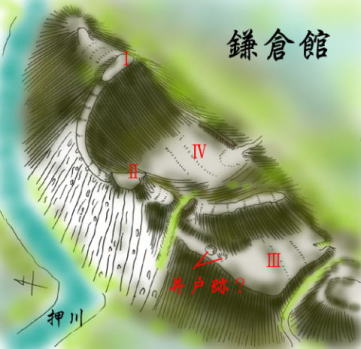この「鎌倉館」という名であるが、山がL字状に「鎌」の形をしていることから付いたように思えるのだが?真実は如何に?